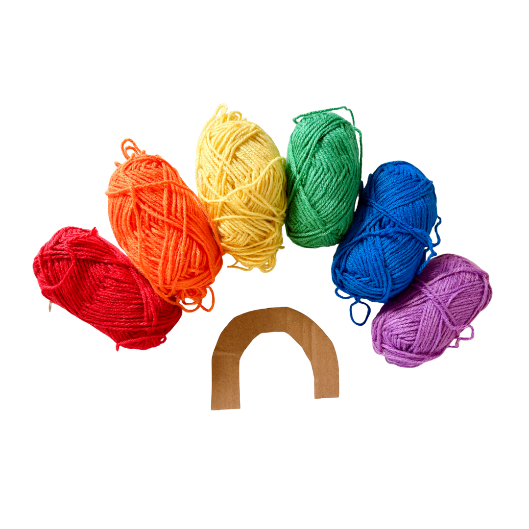 Activity: With grownup assistance, children can wrap colorful yarn around the cardboard cutout rainbow.